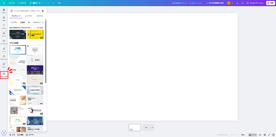 プレゼン資料やSNS投稿などの用途に合わせたサイズを選択します。